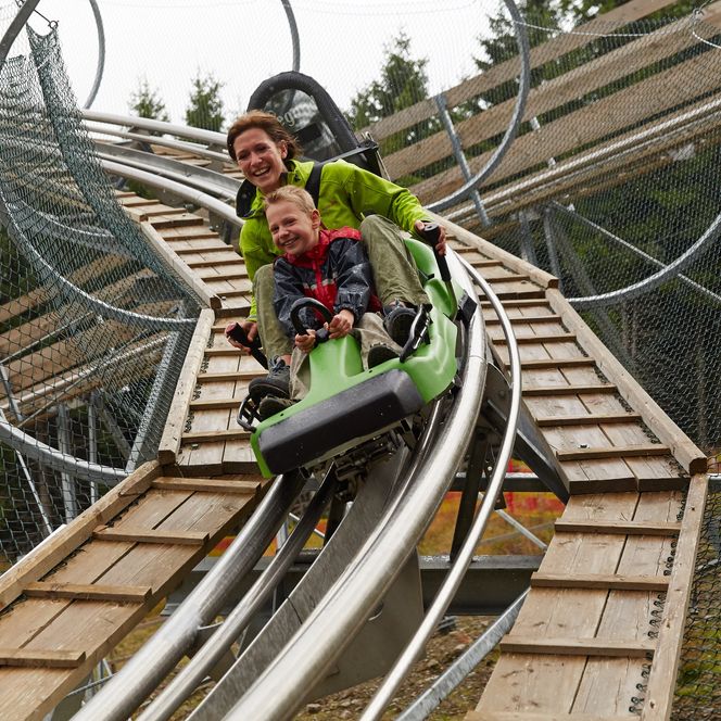 Der Bocksberg ist das ideale Ausflugsziel für die abenteuerlustige Familie. Gemeinsam fahrt ihr mit der Seilbahn zum Bocksberg hinauf, könnt euch oben im Spaßpark ordentlich austoben und düst im Drachenblitz oder Bocksbergbob rasant ins Tal - bevor ihr zur nächsten Runde startet. Ein actionreicher Tag ist euch somit garantiert!