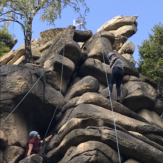 Aus eigener Kraft den Gipfel erklimmen, geheimnisvolle Felsformationen überwinden und mit klopfendem Herzen den atemberaubenden Blick über die magische Gebirgswelt genießen – genau das macht das Klettern im Harz so besonders. Hier geht es nicht nur um sportliche Herausforderung, sondern auch darum, Ängste zu überwinden, Teamgeist zu fördern und über sich hinauszuwachsen.