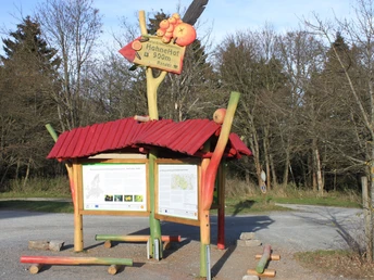 Vom Bahnsteig Drei Annen Hohne aus gehen wir ca. 250 m zurück bis zur Straßenkreuzung, an der die Straße nach Elbingerode abzweigt. Wir überqueren die Straße und fahren links auf dem gut ausgebauten Forstweg hinein in den Nationalpark. Diesen Weg (Oberer Hohneweg oder Eschwegestraße genannt) fahren wir geradeaus bergan, bis wir nach ca. 500 m an einen Wegabzweig mit Brücke gelangen. Hier fahren wir rechts über die Brücke und erreichen nach ca. 1,3 km eine große Wegkreuzung mit Schutzhütte, Bushaltestelle des "Ilsetaler" und dem steinernen Wegweiser "Hohnepfahl". Wir biegen links ab und fahren zunächst bis zum Abzweig "Gasthaus Steinerne Renne" (ca. 5,5 km vom Startpunkt). Hier empfiehlt sich ein Abstecher (ca. 800 m) zum Wasserfall und zum gleichnamigen Gasthaus "Steinerne Renne".