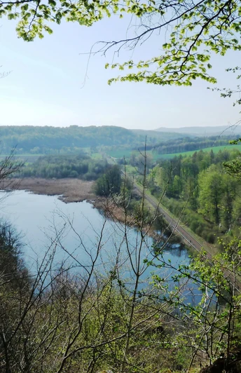 Gehen Sie im Uhrzeigersinn um die Klostergebäude und die eindrucksvolle Kirchenruine herum, entlang des rechten Ufers der Wieda, dann über den an der ehemaligen Klostermauer liegenden Museumsparkplatz und weiter bis zur Straßenbrücke. Über ebendiese führt der Weg zum Itelteich. Im Mittelalter stauten die Walkenrieder Mönche einen Großerdfall (Polje) mit Karstquelle und Bachschwinde, so dass ein Fischgewässer entstand. Heute ist dies ein technisches Denkmal und als Teil eines Naturschutzgebietes ein Eldorado für Wasservögel und zahlreiche weitere Tierarten. Mächtige alte Buchen säumen den Weg hinauf auf die Anhöhe über dem Bahngleis, das im Jahr 1868 errichteten 300 m langen Walkenrieder Tunnel verschwindet. Unter uns befindet sich der größte Naturhohlraum Deutschlands, die Himmelreichhöhle (unzugänglich). Das Himmelreich mit seiner artenreichen Laubwaldvegetation offenbart schöne Fernblicke nach Westen und vom kleinen Hexentanzplatz (Stempelstelle!) mit seinen Akeleibeständen über Ellrich nach Osten. Von hier führt der Weg über die majestätischen von knorrigen alten Bäumen gesäumten Itelklippen wieder hinab ins Wiedatal.