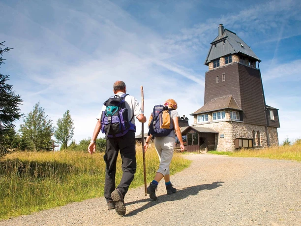 In Lerbach, heute ein Ortsteil von Osterode, beginnt die 2. Etappe des BaudenSteigs. Dank der zahlreichen Bergwerkstandorte wurde Lerbach in der Vergangenheit oft als „Bergdorf“ bezeichnet, obwohl es im Tal liegt. Der Weg führt zum idyllisch gelegenen Sösestausee. Heute versorgt der Sösestausee die Region um Göttingen sowie das Gebiet um Hannover mit Trinkwasser. Bald nach dem Stausee steigt der Weg an. Auf der Höhe, auf naturbelassenen Wegen, lässt es sich vorzüglich wandern. Hier im Gebiet „Auf dem Acker“, bereits im Nationalpark Harz, gibt es eine wunderschöne Hochmoorlandschaft. Der Bergrücken besteht aus dem Acker-Bruchberg-Quarzit. Dies ist ein sehr hartes Gestein, dadurch widerstand der „Acker“ wesentlich besser der Verwitterung als die Umgebung und schraubt sich auf über 800 Meter ü.NN, was herrliche Aussichten garantiert. Der Hanskühnenburg-Felsen kündigt die nahegelegene Baude an. Vom Turm genießt man bei schönem Wetter einen Rundblick. Zeit für eine genüssliche Einkehr. Übrigens: einer der prominentesten Wanderer am Hanskühnenburg-Felsen war Johann Wolfgang von Goethe, allerdings gab es damals noch keine urige Einkehrbaude. Das Ziel ist nah: Der BaudenSteig führt ab hier bis Sieber nur noch bergab.