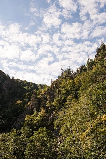 Die Umleitung ist nicht mit dem Harzer-Hexen-Stieg Symbol gekennzeichnet. Im Ortszentrum von Treseburg geht es dem Harzklub-Weg 32C (roter Punkt) folgend über den "Weißen Hirsch" und das s.g. "Pfeildenkmal" zum Hexentanzplatz. Hier lässt sich die beeindruckende Aussicht in die Bodetal-Schlucht und auf die gegenüberliegende Rosstrappe genießen. Ab den Hexentanzplatz geht es dem blauen Punkt folgend über Serpentinen nach Thale hinab.