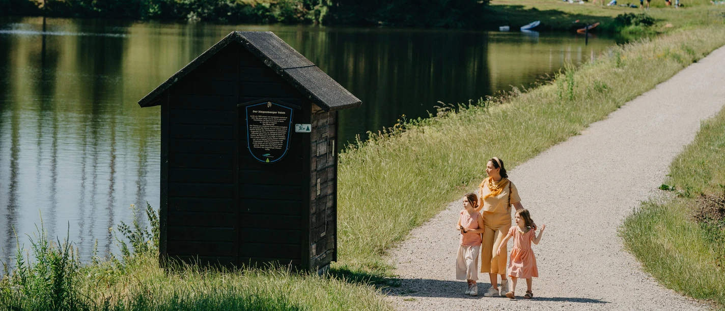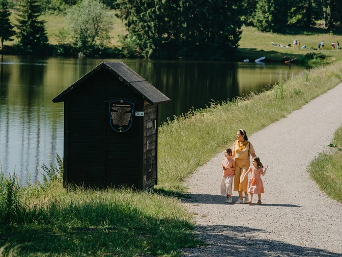 Ausgangspunkt ist der Parkplatz vor dem Campingplatz Prajljust. Von dort aus geht es entlang eines Grabens auf gut begehbaren Wegen ein Stück entlang des Harzer Hexenstiegs. In Richtung Polsterberger Hubhaus entlang der Gräben und zwischen den Teichen durch. Stempel 128 der Harzer Wandernadel liegt auf dem Weg an der Huttaler Widerwaage. Die Runde endet am Startpunkt