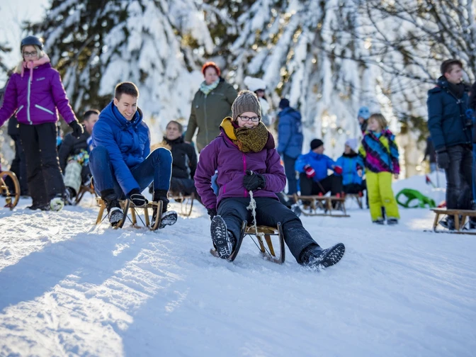 1.500 m lange Rodelbahn am Bocksberg. Teilweise beleuchtet.