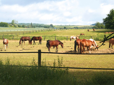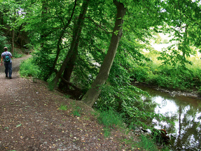 Wenig später gelangt der Wanderer aus dem Halbdunkel des Waldes auf die lichten Höhen oberhalb des Helmstals.
