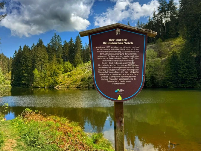 Ausgangspunkt der Rundwanderung ist der Parkplatz am Ortsrand von Wildemann an der Glow Golf Anlage. Der Weg führt über die Alle der Jahresbäume zunächst am Wasserfall entlang in Richtung Unterer Grumbacher Teich. Entlang des Weges informieren Tafeln über historische Relikte wie einen alten Kohlemeiler, hölzerne Wasserleitungen und regionale Bräuche.