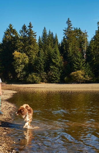 Nehmen Sie an heißen Sommertagen Ihre Badesachen mit auf die Wanderung. Am Ziegenberger Teich gibt es eine offizielle Badestelle, wo Sie sich nach der Wanderung herrlich abkühlen können.