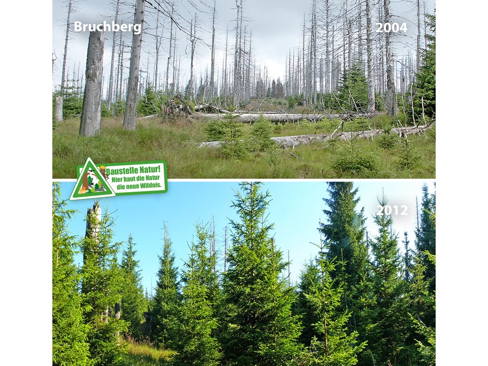 Rund um das Brockenmassiv und in den Hochlagen prägen nun großflächige Flächen mit abgestorbenen Fichten das Bild. Während die Natur im Nationalpark Harz weitgehend sich selbst überlassen wird und die Fichtenstämme so stehen und fallen, wie es die Natur vorsieht, treiben die Forstämter den Waldumbau aktiv voran, sodass auf den entstandenen Kahlflächen schnell wieder frisches Grün zum Vorschein kommt. Die Wandlung unserer Landschaft ist übrigens nicht nur im Harz im Gange. Weltweit sind Wälder von diesen Veränderungen betroffen.