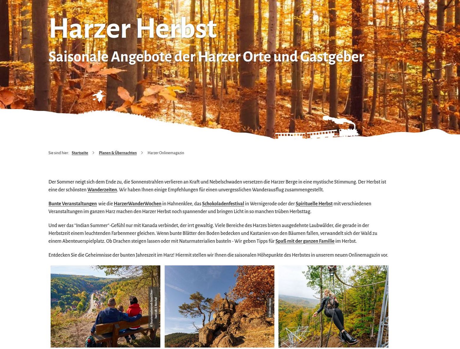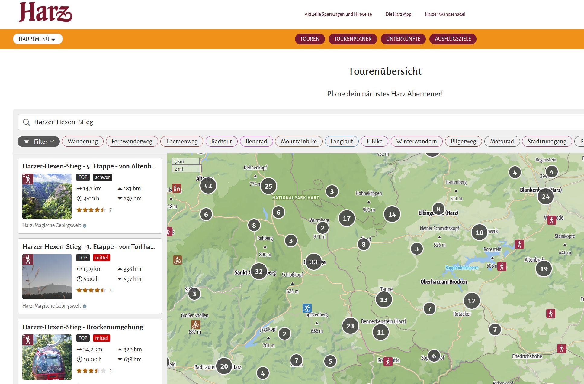 Unter der Domain www.touren.harzinfo.de betreibt der HTV das digitale Tourenportal. Darüber kann der Harz kartenbasiert erkundet werden.
